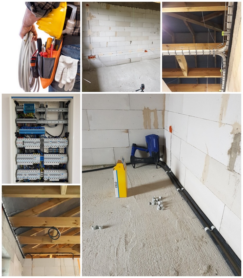 - Instalacje gniazdek, włączników i zabezpieczeń elektrycznych.